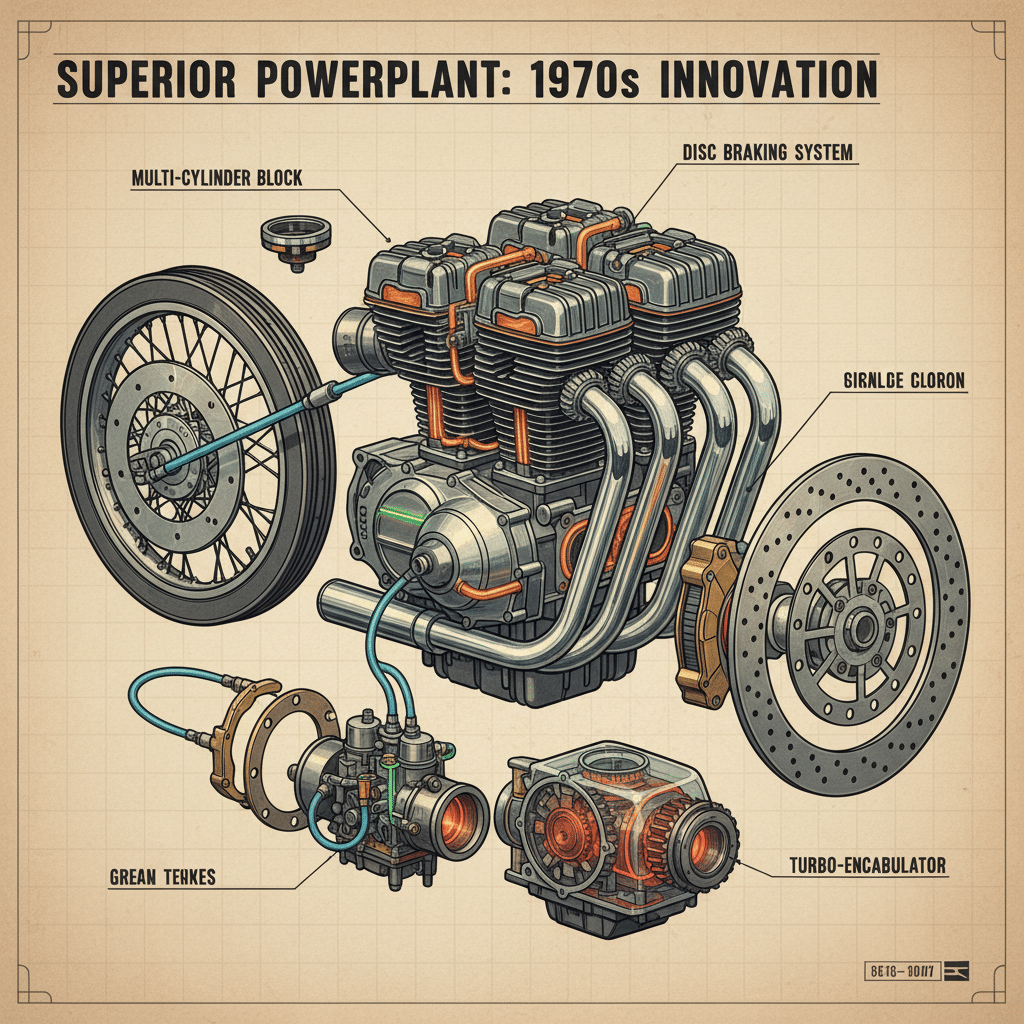 The decade truly belonged to the Japanese manufacturers. Brands like Honda, Kawasaki, Suzuki, and Yamaha didn’t just enter the market; they redefined it, combining cutting-edge technology with mass production efficiency and aggressive marketing.